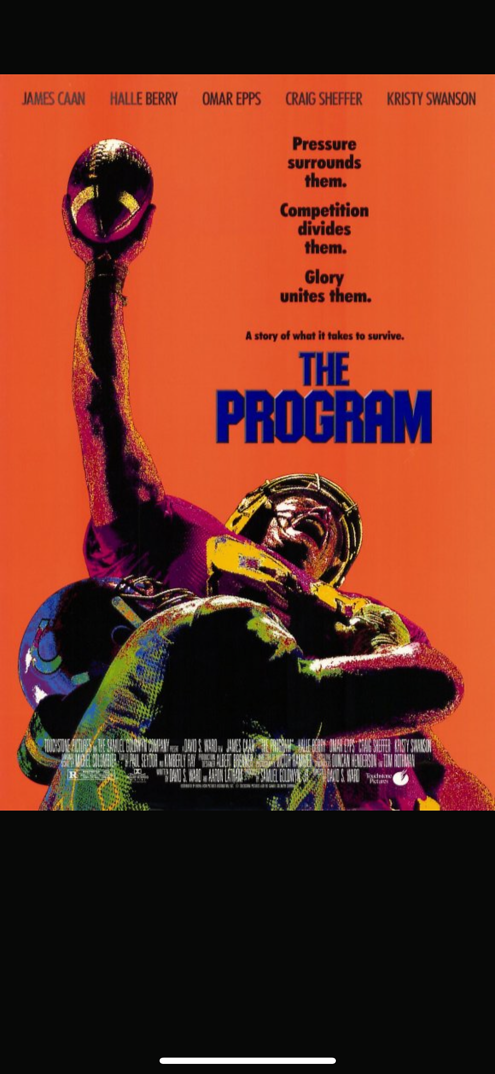 “Several players from different backgrounds try to cope with the pressures of playing football at a major university.” This isn’t a great movie, but it has a ton of football and does it’s job. It’s also basically an ad for doing steroids, so that’s kinda hilarious.